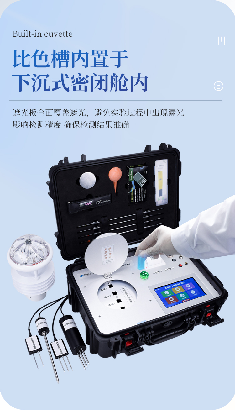 ★25.比色槽内置于下沉式密闭舱内,直径为15.7cm圆形遮光板全面覆盖遮光,避免实验过程中出现漏光影响检测精度,保证检测结果准确。