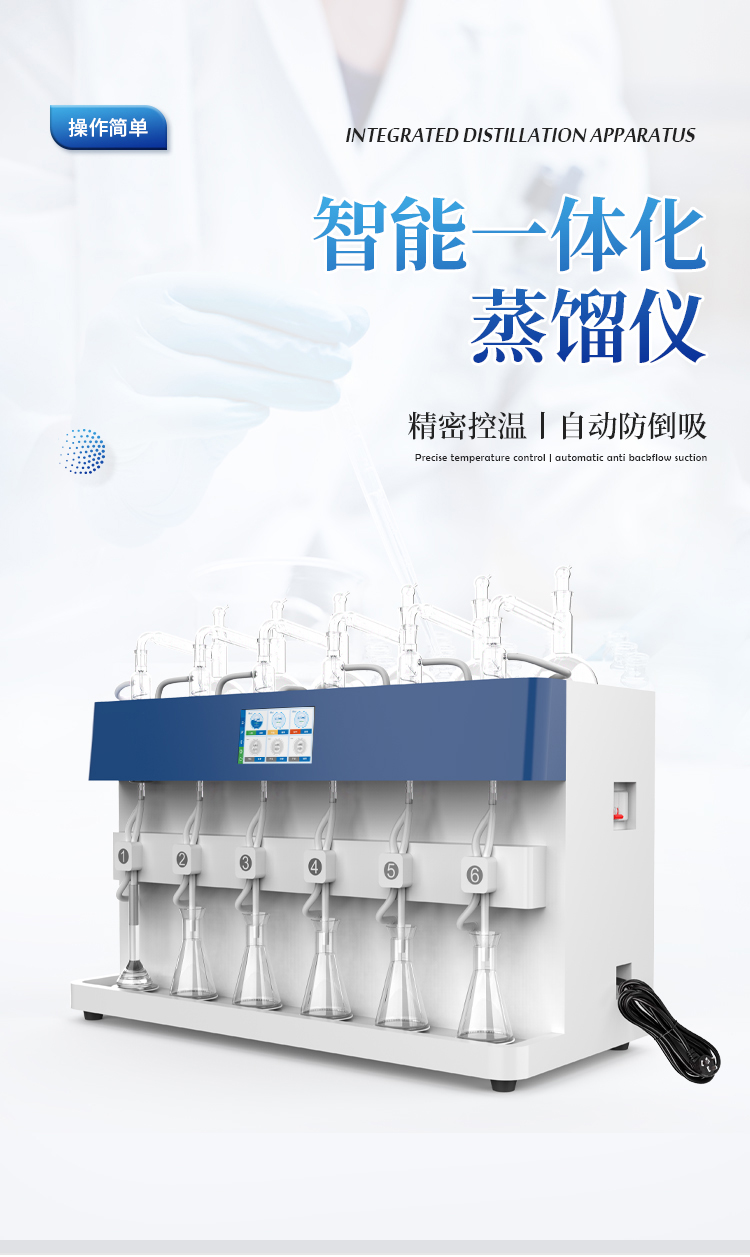 全自动一体化蒸馏仪是一款专为现代实验室设计的智能、高效的高科技产品,旨在通过高度自动化和智能化的操作,显著提升实验效率与数据准确性。该蒸馏仪集成了先进的冷却水循环技术、独立多通道控制、以及7寸液晶触摸屏控制、自动清洗、自动气密检查、反吹、远程OTA系统升级等多项创新特性,为用户提供了一站式的蒸馏解决方案。