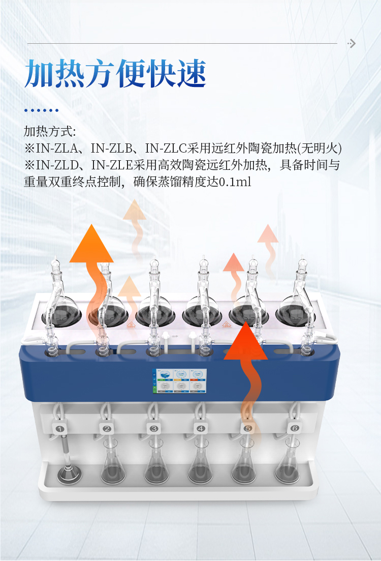 4.精准控制:采用高效陶瓷远红外加热碗,具备时间与重量双重终点控制,确保蒸馏精度达0.1ml。
