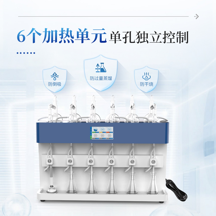 2.多通道独立控制:3个加热单元各自独立,配备防倒吸、防过量蒸馏及防干烧保护。