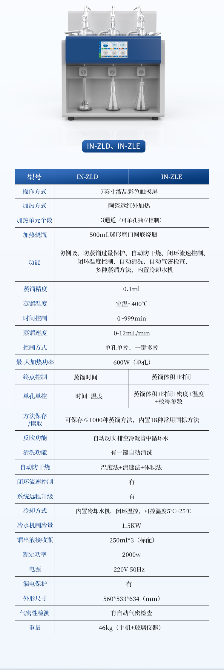 蒸馏精度 | / | ±0.1mL | ±0.1mL |