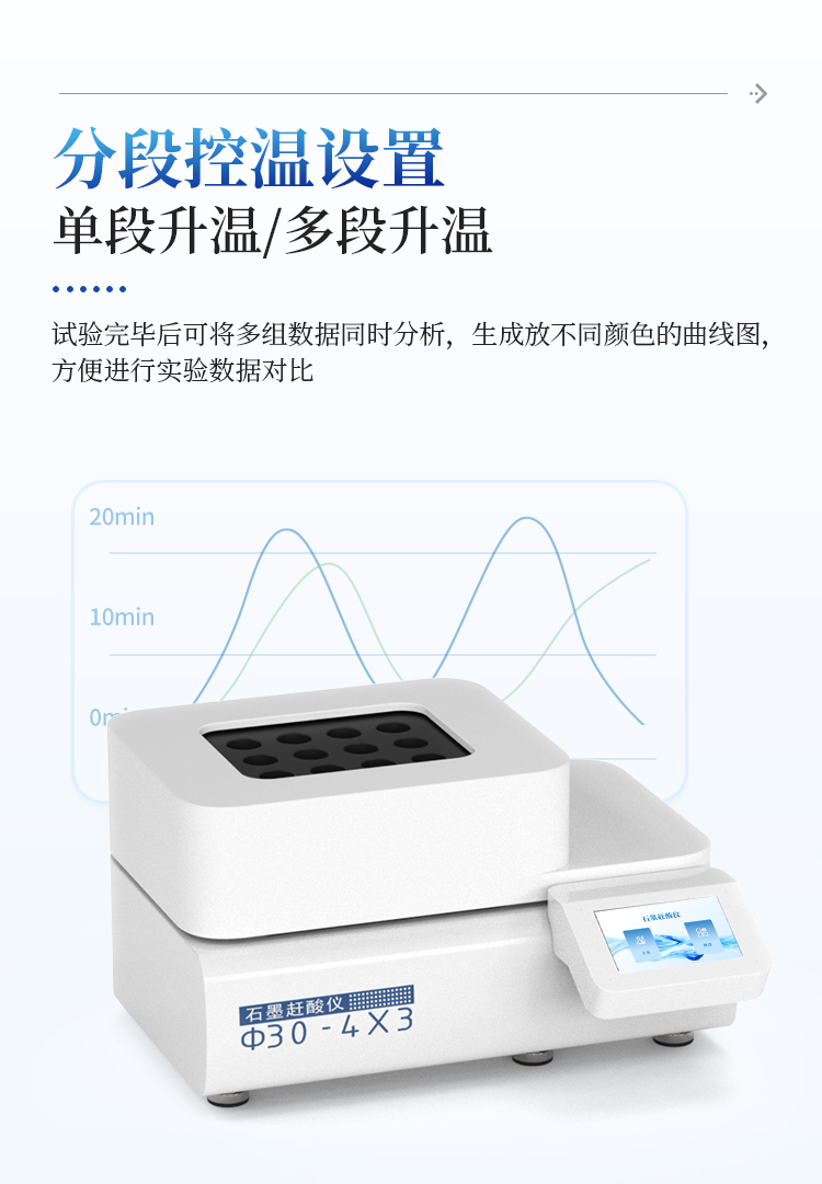 分段控温设置,即可单段升温,也可多段升温,设置灵活,仪器将自动按顺序完成。更适于易产生泡沫的样品。