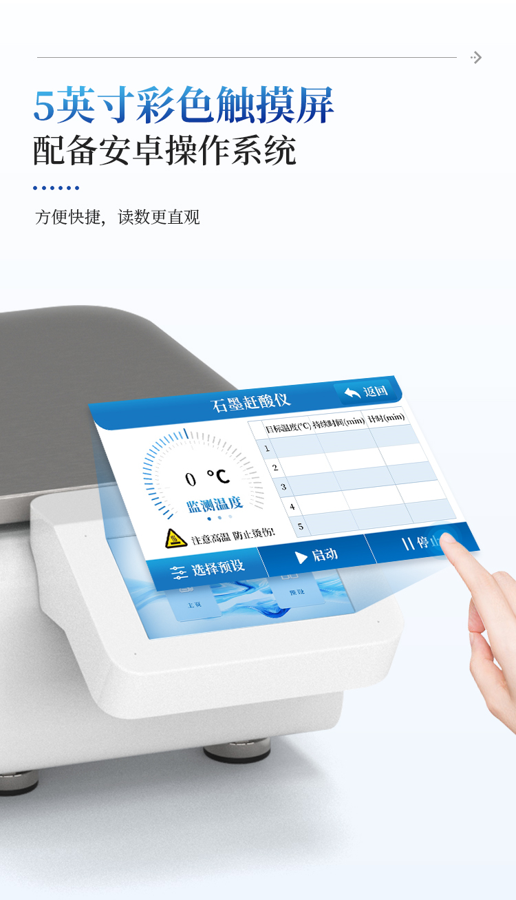 使用5寸彩色触摸屏进行仪器操作,配备安卓操作系统,方便快捷。