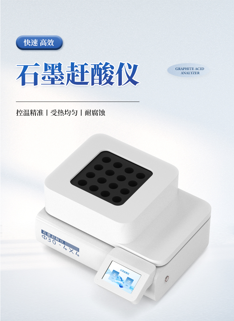 石墨赶酸仪,具有快速、高效、便捷等优点,适用于食品、药品、质检、环保、疾控、化工、高校等行业样品的处理。可用于微波消解的预处理和赶酸处理,是原子吸收、原子荧光、ICP-AES等分析仪器的理想配套产品,更适合与微波消解仪配套使用。