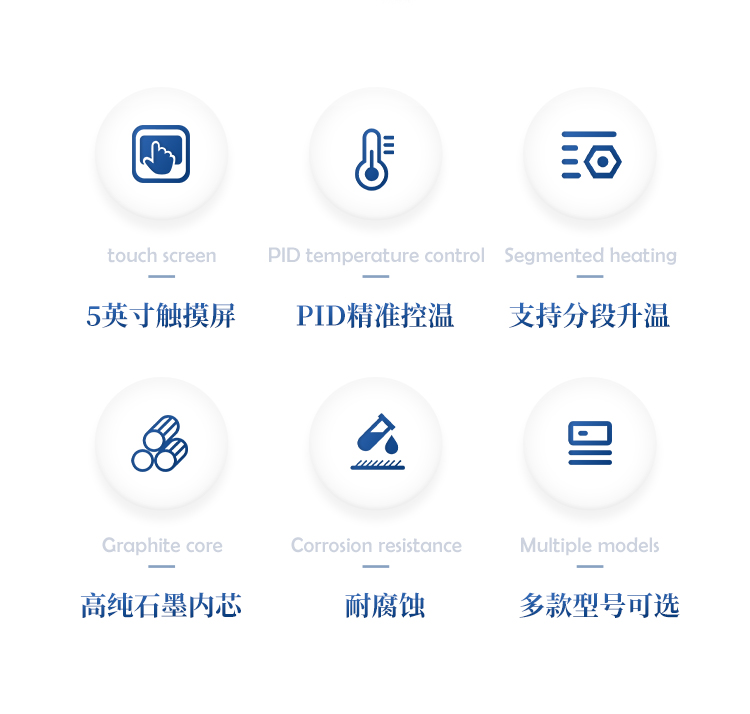 采用优质石墨炉内芯,平均温差较小,样品效果一致性好,热传导效率更高。石墨块具有特氟龙涂层,耐腐蚀,延长使用寿命。