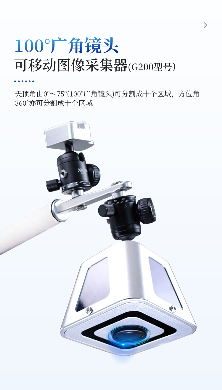 视角细分: 天顶角由0°——75°(100°广角镜头)可分割成十个区域,方位角360°亦可分割成十个区域