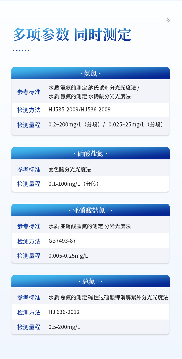 检测量程:0.1-100mg/L(分段)