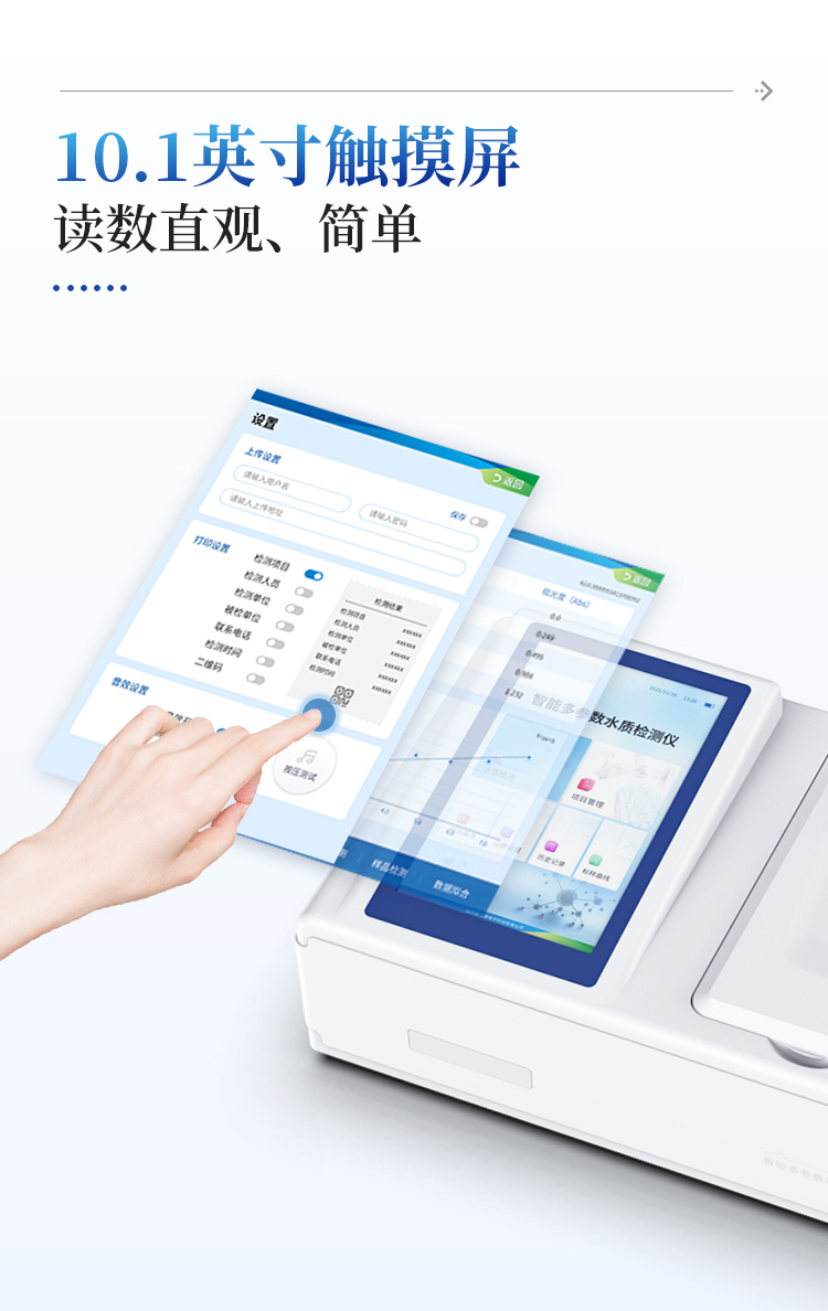 2、8英寸液晶触摸屏显示,人性化中文操作界面,读数直观、简单。