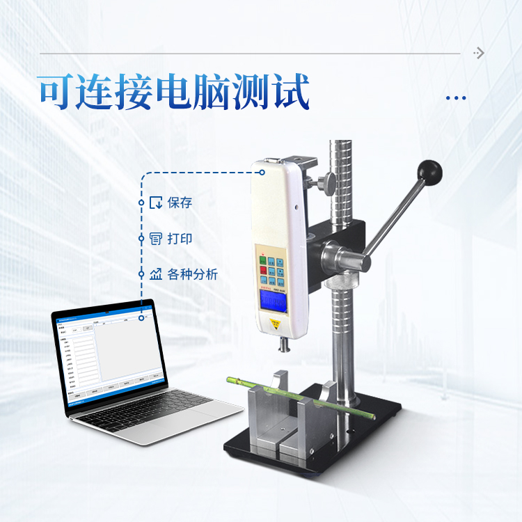 3、可连接电脑测试,可保存、打印,做各种分析,输入速度、面积还可显示位移、压强等参数;