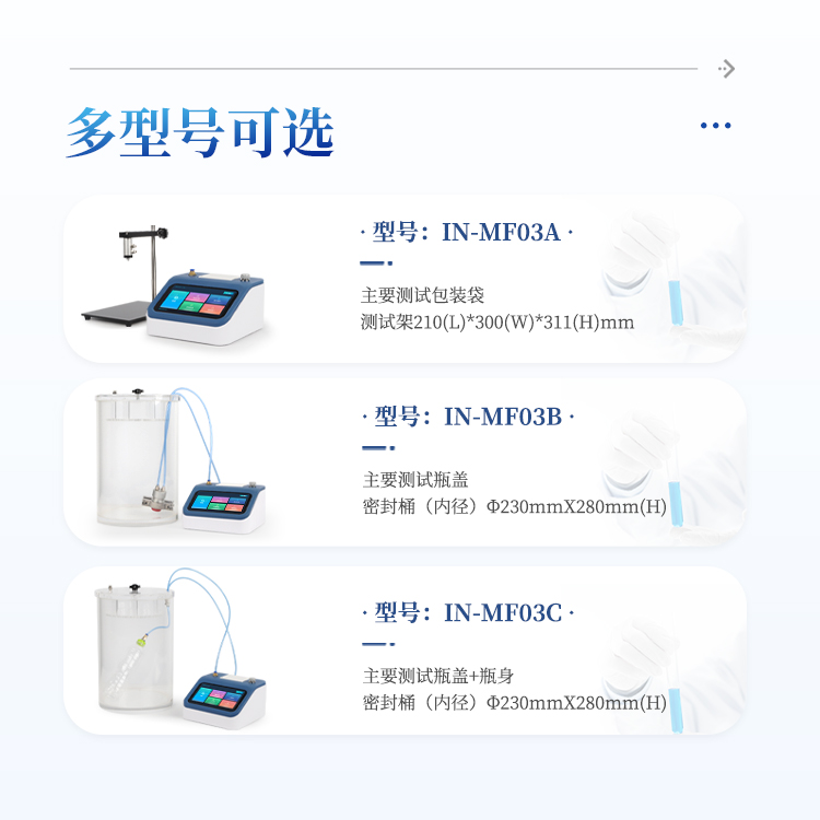 泄漏与密封强度测试仪,专业适用于各种热封、粘接工艺形成的软包装件、无菌包装件等各封边的封口强度、热封质量、以及整袋胀破压力、密封泄漏性能的量化测定;对软包装袋所使用材料的抗压强度、耐破强度等指标分析;各种塑料防盗瓶盖密封性能、瓶盖连接脱扣强度、材料的应力强度的量化测定;瓶体密封性、抗压性、耐破性等评估分析。通过正压法来进行测试,模拟实际使用环境下的密封强度、泄漏性能和耐压极限,为各行业的包装质量管控提供可靠的依据。