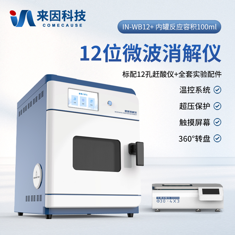 简要描述: 12位微波消解仪是一种用于样品前处理的设备,通过微波加热技术对样品进行快速、有效的消解。该仪器广泛应用于食品、环境保护、疾病控制、质量监督、商品检验、科研院所等领域,特别适用于各种样品的酸消解和溶剂萃取。