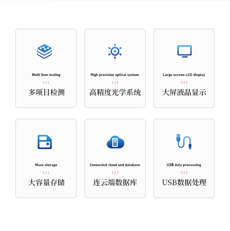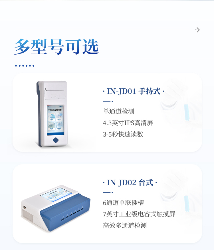 11、检测时间:< 5秒 (单卡及多联卡);可对样本进行胶体金定性/半定量检测。