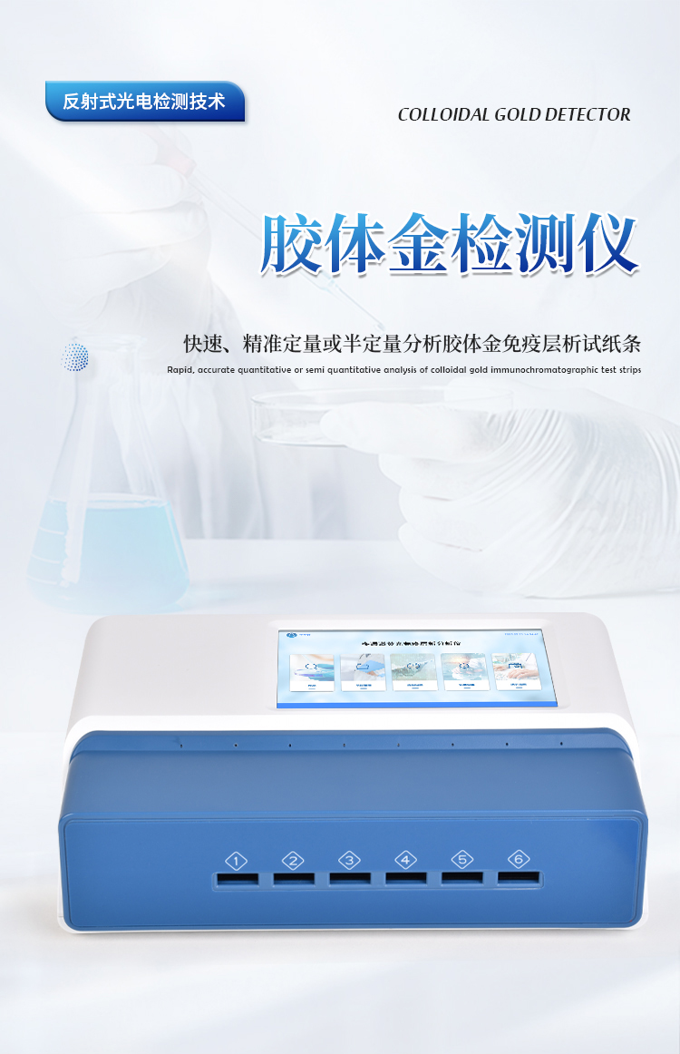本仪器是一款专为快速、精准定量或半定量分析胶体金免疫层析试纸条(GICA)设计的高性能光学检测设备。仪器集成了先进的光电检测技术、智能数据处理平台、高通量设计及强大的网络功能,通过高稳定性光学系统实现对免疫层析结果的可靠读取、智能分析与即时报告输出。其坚固耐用的设计和便捷的操作流程,使其成为实验室研究与现场快速检测(POCT)的核心仪器之一。