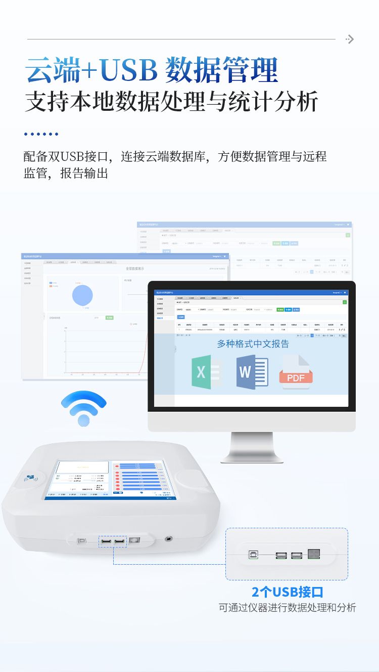 21、数据处理:可通过通讯端口进行数据汇总、上传监管平台等