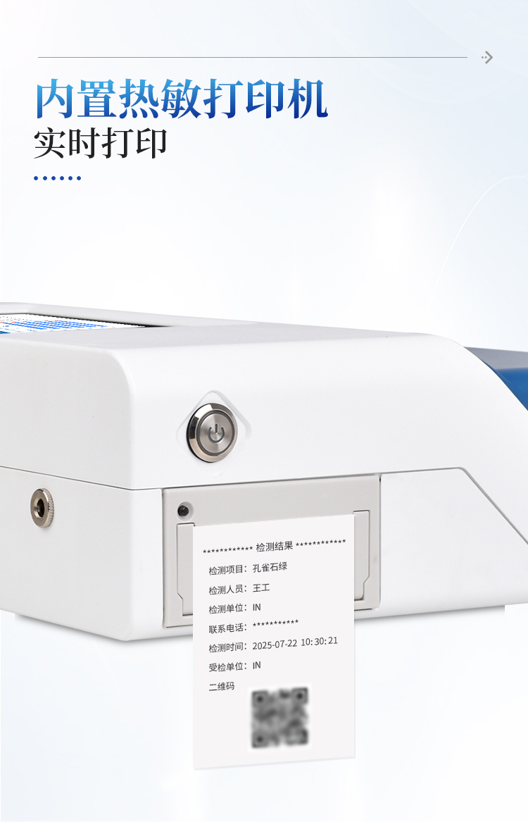 4、内置热敏打印机,检测完成即可现场打印标准报告,提升工作效率。