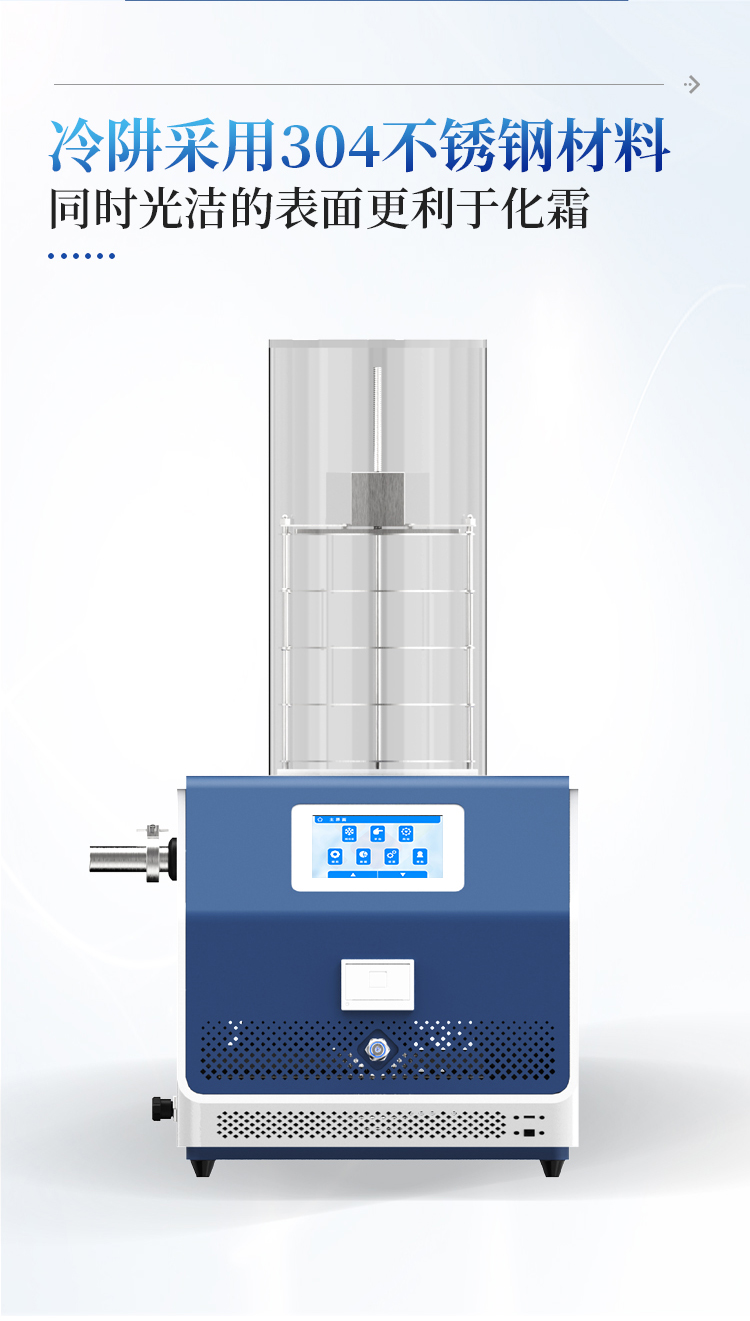 简要描述: 多歧管压盖加热冻干机原装进口封闭式压缩机,制冷迅速,效率更高;新型高效环保冷媒,对环境友好,完全符合国家环保要求; 冷阱最大捕水量≥3KG,工作温度≤-60℃,内壁温度均匀,专业的气体导流设计,既可高效冻干,又可高效捕水,保护真空泵。冷阱采用外部盘管,内部光滑无障碍,具备样品预冷冻功能,无需再配备超低温冰箱或液氮处理冷冻设备。