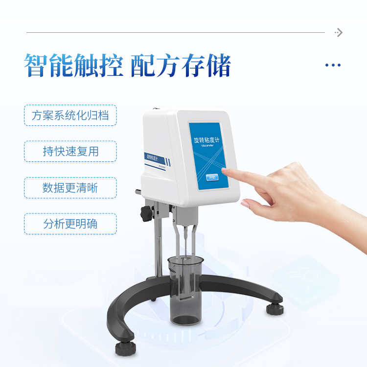 简要描述: 粘度计是一种用于测量液体粘度的精密仪器。它通过测量旋转部件在液体中受到的阻力来确定液体的粘度。旋转粘度计广泛应用于化工、食品、医药、石油等行业,用于质量控制、研发和生产过程中的粘度测量。5英寸高清LCD彩色触摸屏;配方存储:将已验证的检测方案系统化归档,支持快速复用与团队协作。