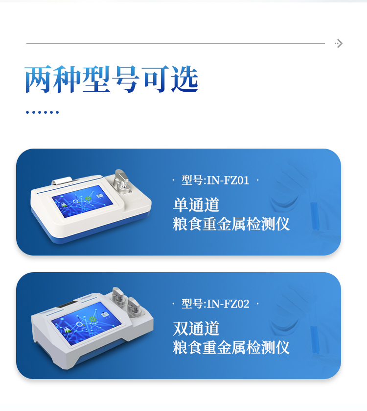 简要描述: 双通道重金属检测仪IN-FZ02适用于粮食、大米、水质、食品、水产、蔬菜、食用菌等食用农产品中重金属铅、镉、砷、锌、铜以及有益元素硒的检测。该仪器采用溶出伏安法,以其痕量检测的技术优势,配合丝网印刷电极和简易的样本前处理方式,快速定量分析样本中重金属含量,适合各单位使用并且结果准确和稳定。