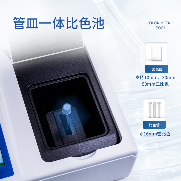 5、支持10mm、30mm、50mm皿比色和φ16mm管比色等比色方式,多元选择,确保测量的准确性;