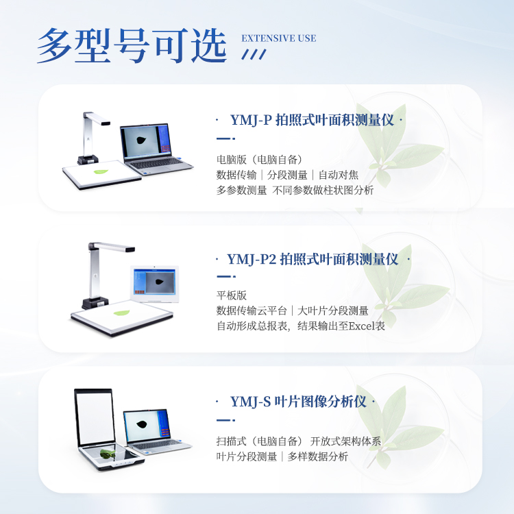简要描述: 叶面积测定仪YMJ-P2采用开放式架构体系,自由组合为田间便携式、实验室型等扫描的个性面积测量仪器,该仪器利用经过调校的图像捕捉设备获取高质量的叶片图形并运用专业软件精确分析计算叶片面积及其相关参数,广泛运用于植物生理学、植物生态学、植物病理学、农学、园艺和林学等学科。