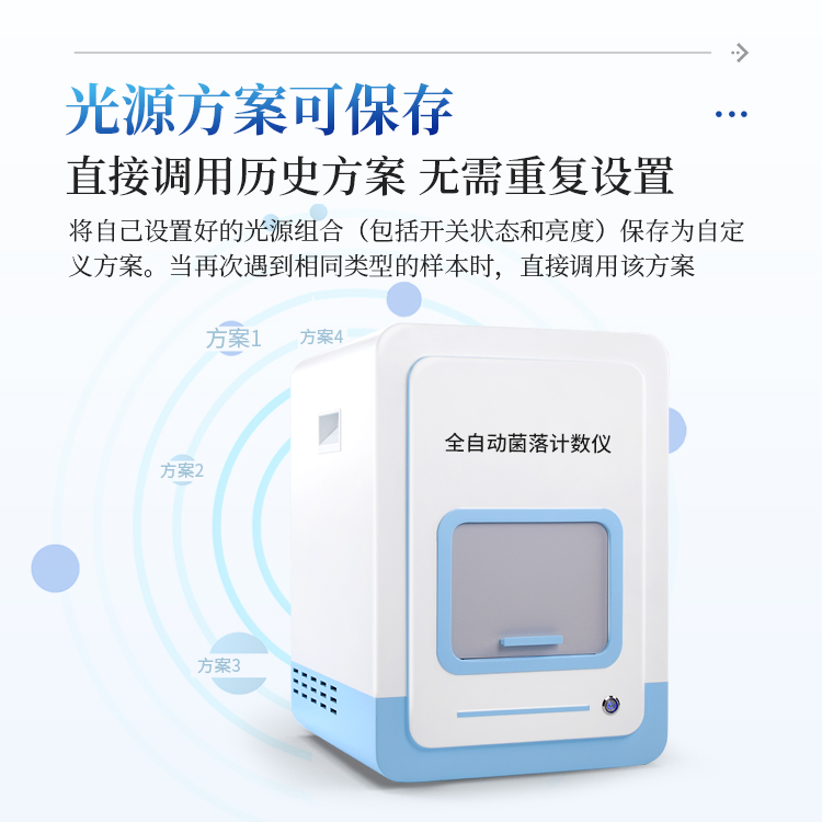 该系列全自动菌落计数仪配备了灵活的上、下双光源系统,用户可以根据不同培养皿的类型、菌落特性以及背景情况,用软件自由调节光源以获得最佳的成像效果。