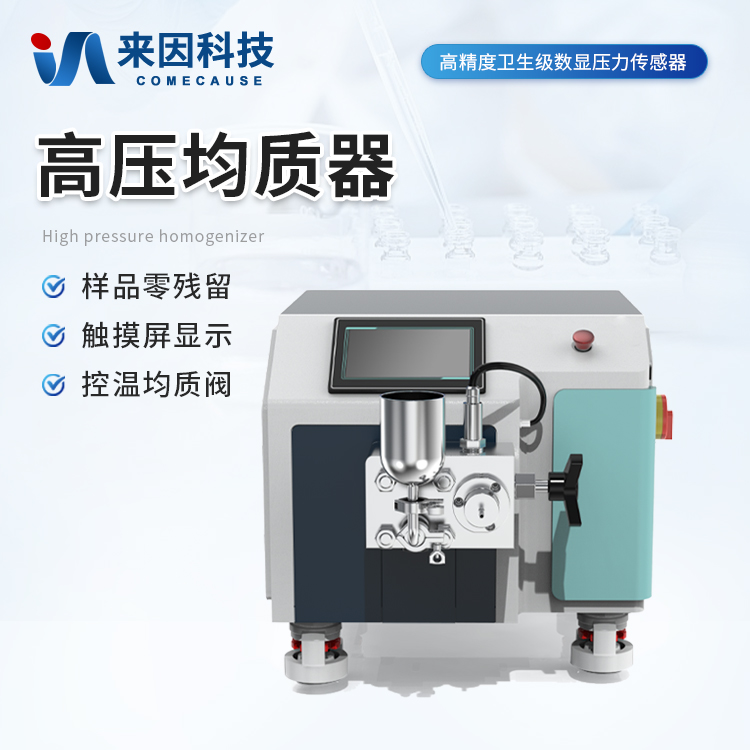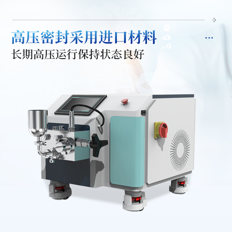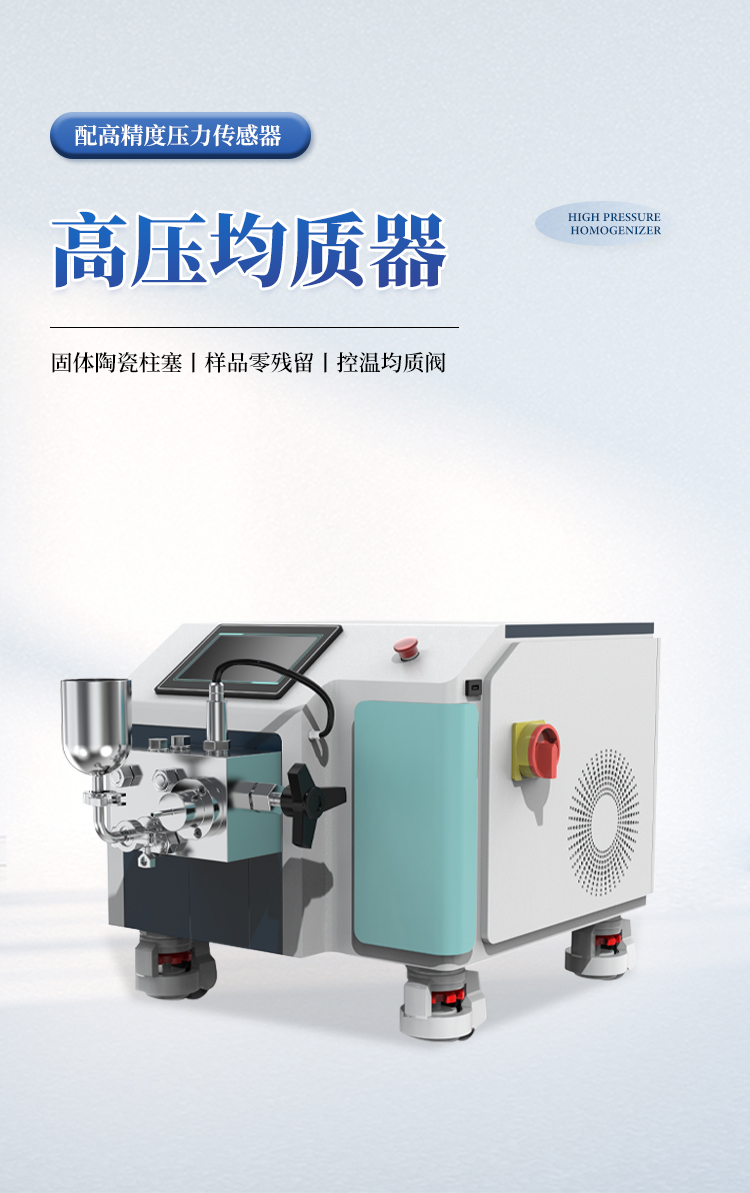 高压均质机是以高压往复泵为动力传递及物料输送机构,将物料输送至工作阀部分。物料在通过工作阀的过程中,在高压下产生强烈的剪切、撞击和空穴作用,从而使液态物质或以液体为载体的固体颗粒得到超微细化。