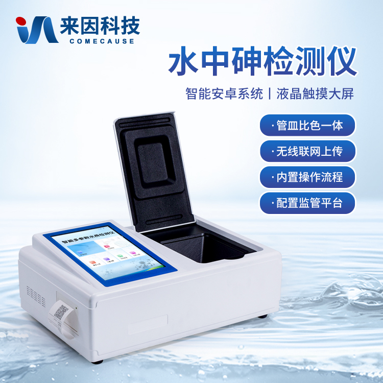水中砷检测仪是一款基于分光光度法原理研发的智能化水中总砷检测仪,专门用于饮用水、地表水、地下水及废水中总砷的快速定量分析。仪器采用高性能LED光源与大面积光电池,结合优化的硝酸银-聚乙烯醇吸收显色体系,确保了在420nm波长下检测的高灵敏度与稳定性。其搭载的Android智能操作系统与,使操作直观流畅;具备万条数据存储、Wi-Fi/蓝牙传输及防水机身,非常适合实验室与现场检测场景。仪器支持多点标定与内置曲线,配合Type-C通用充电与长续航设计,为用户提供了准确、便捷、可靠的一体化砷检测解决方案。